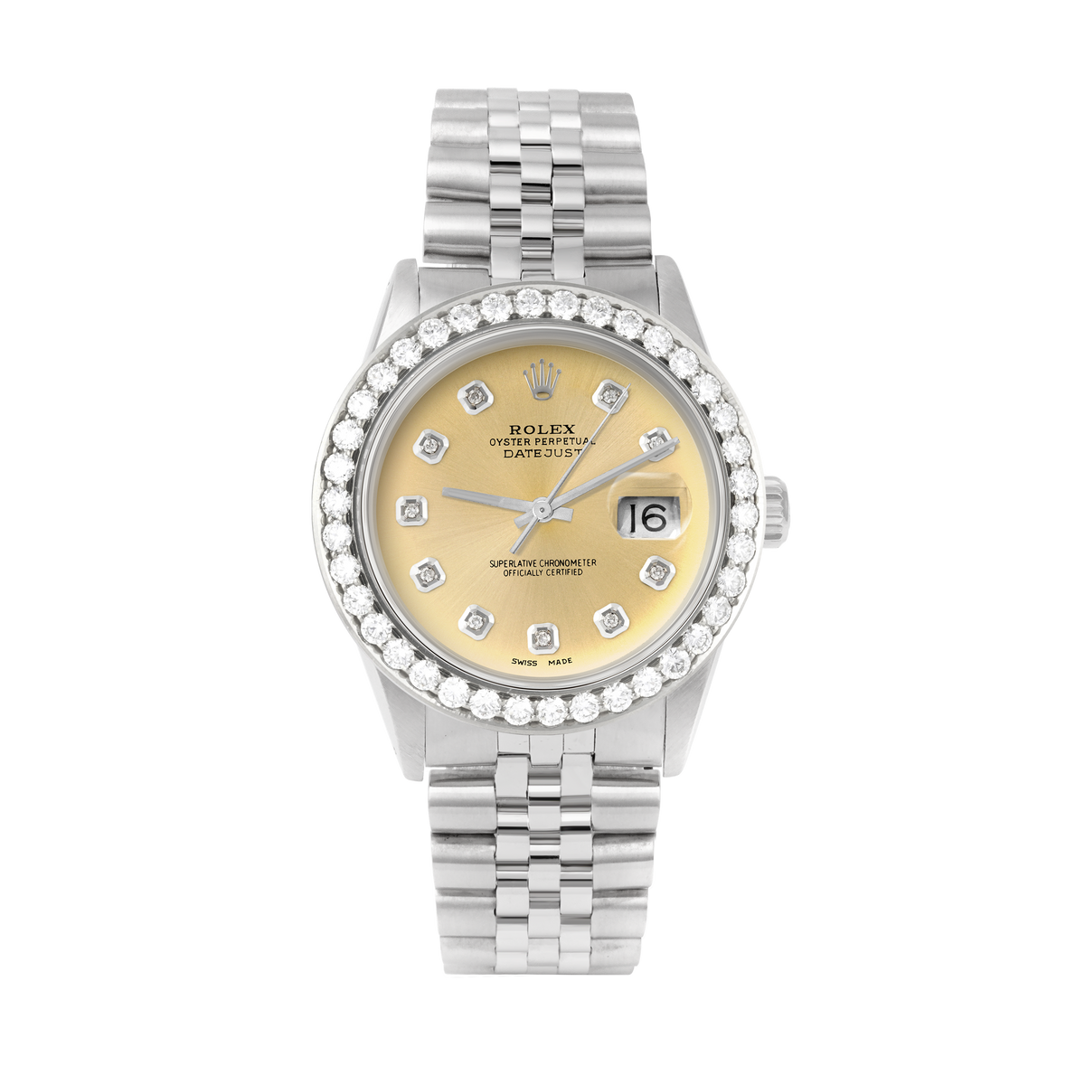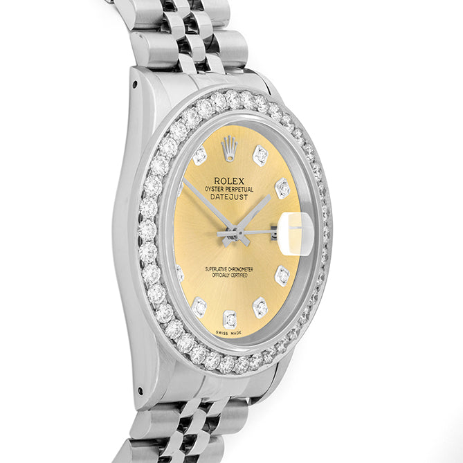 Rolex Datejust 36mm STAINLESS STEEL 16234 Champagne Dial | Diamond Hour Markers | 2.5 ct Diamond Bezel - Champagne / 2.5ct Diamond / Jubilee
