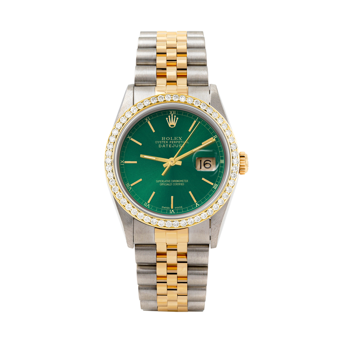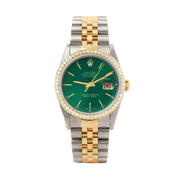 Rolex Datejust 36mm TWO TONE 16233 Green Dial | Stick Hour Markers | 1ct Diamond Bezel - Green / 1ct Diamond / Jubilee