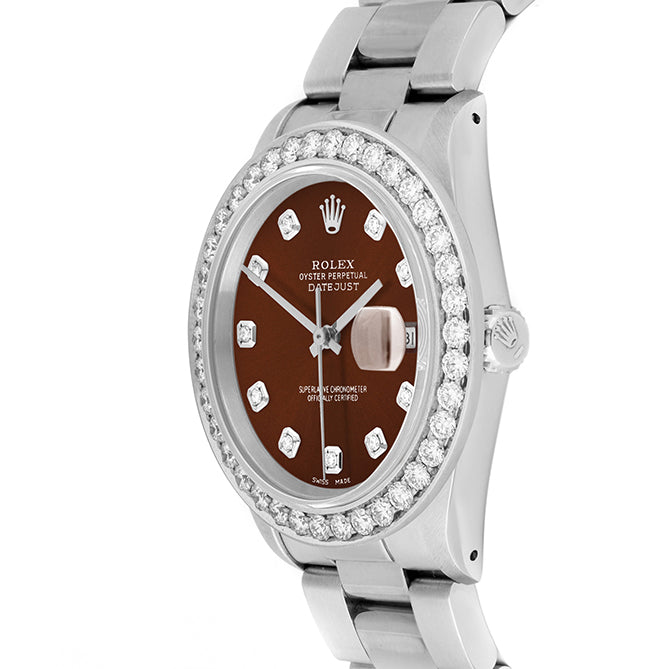 Rolex Datejust 36mm STAINLESS STEEL 16234 Brown Dial | Diamond Hour Markers, 2.5ct Diamond Bezel
