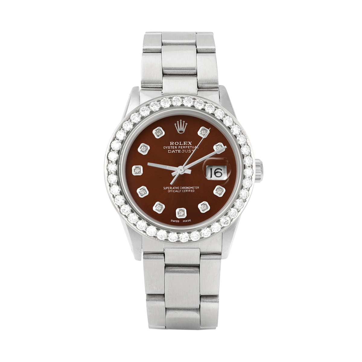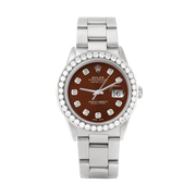 Rolex Datejust 36mm STAINLESS STEEL 16234 Brown Dial | Diamond Hour Markers, 2.5ct Diamond Bezel - Brown / 2.5ct Diamond / Oyster